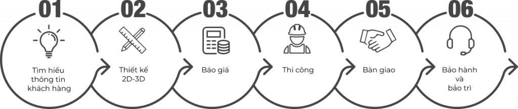 Các công đoạn đo đạc, lập bản vẽ, lựa chọn vật liệu, màu sắc, thiết bị… và